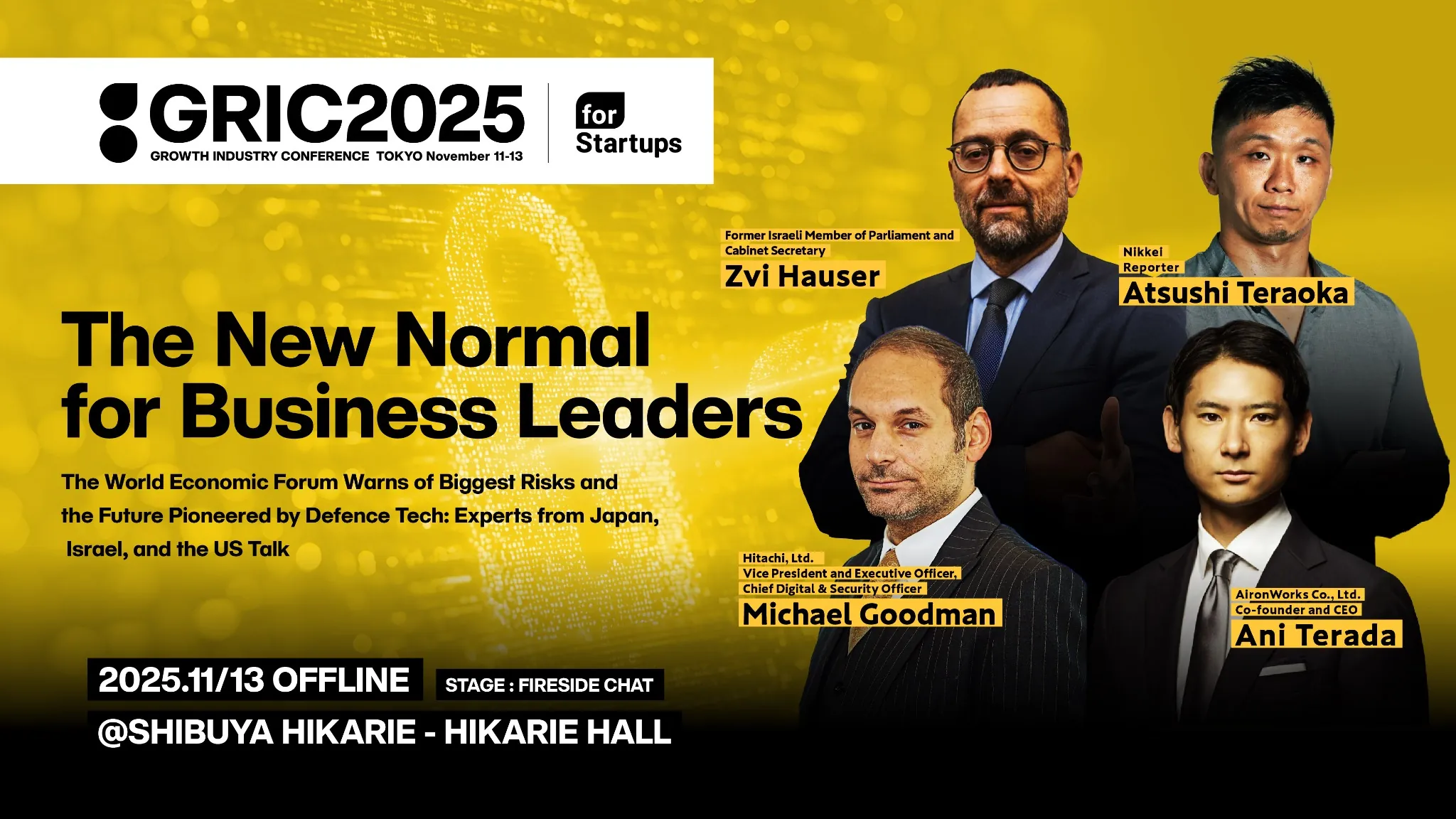 ~ This session will be conducted in English ~ The World Economic Forum’s (WEF) Global Risks Report identifies an escalating series of threats — from misinformation and geopolitical conflicts to cyber warfare — that increasingly endanger both nations and corporations, consistently ranking among the top global risks. In this session, experts from Japan, Israel, and the United States—leaders at the forefront of security and technology—will engage in a multidimensional discussion on how the evolution of Defense Tech can confront these growing threats. Against the backdrop of AI-driven disinformation, cyber intelligence and information warfare, interstate conflicts, and social fragmentation—risks that directly impact corporate management—this discussion will explore how technology can shape new frameworks to safeguard nations, economies, and enterprises. Moderated by a security correspondent from Nikkei, the panel brings together: the Executive Vice President & CD&SO of Hitachi, Ltd., the former Cabinet Secretary of Israel, and the CEO of AI cyber-defense company AironWorks. Together, they will share the new realities of security that leaders must understand today, and practical strategies for addressing them through technology.