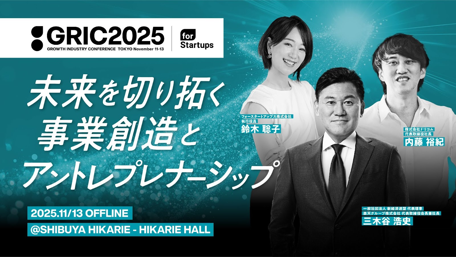 成長産業支援事業を推進するフォースタートアップス株式会社(本社:東京都港区、代表取締役社長:志水 雄一郎 以下、フォースタートアップス)は、11月に開催する国内の成長産業を世界と接続する大型カンファレンス「GRIC2025」の登壇者情報を新たに一部解禁いたします。