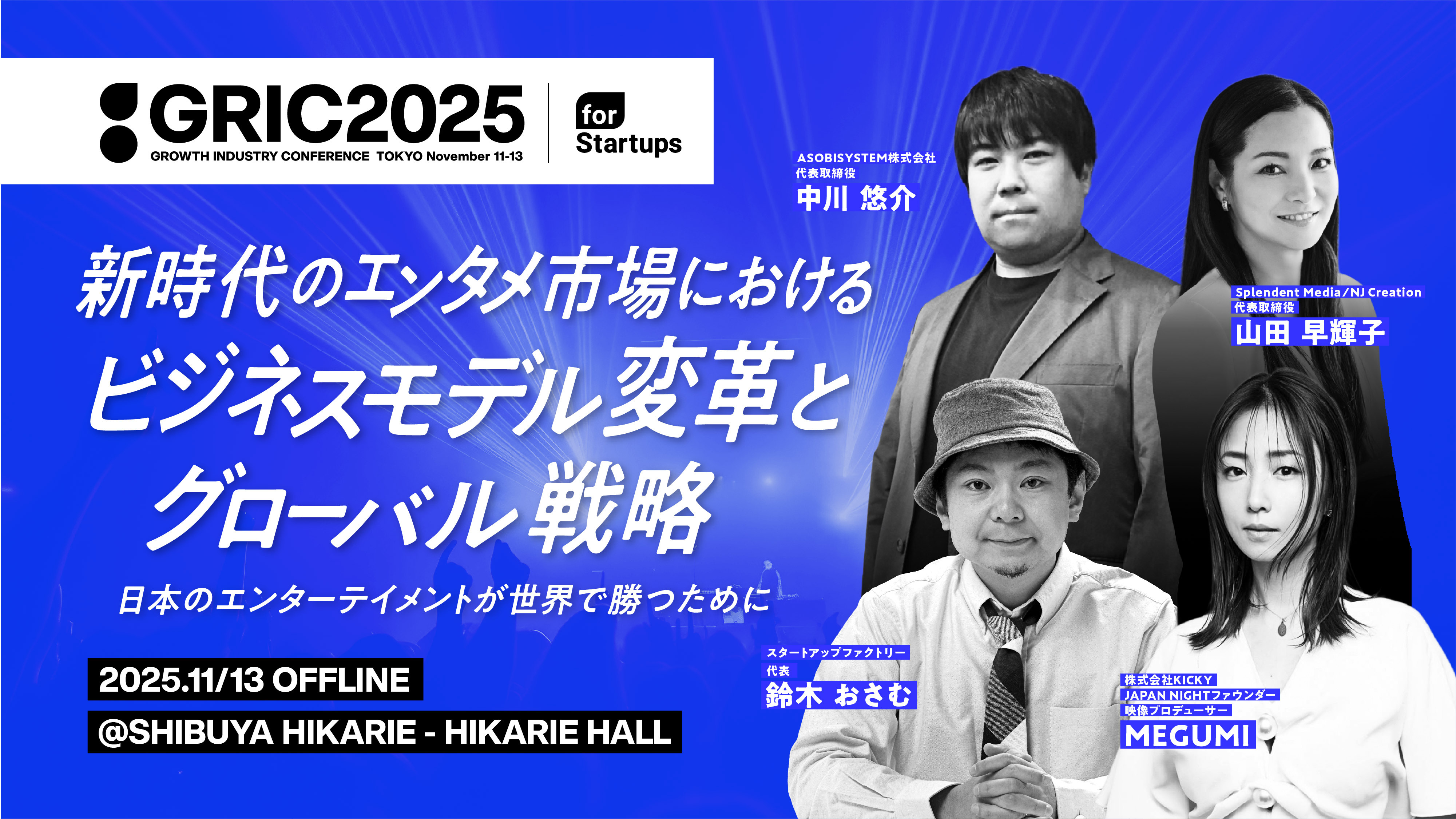 アプリやストリーミングの進化で多様化するエンタメ体験。第一線で挑戦を続ける起業家たちが、挑戦の意義やグローバル戦略などを語り、日本のエンタメが世界で成長するための未来像を描きます。